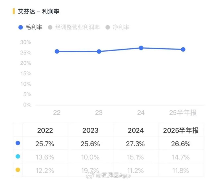 這點從毛利率上也能得到一定驗證。報告期內以及今年上半年,艾芬達的毛利率穩定在25%-27%左右。