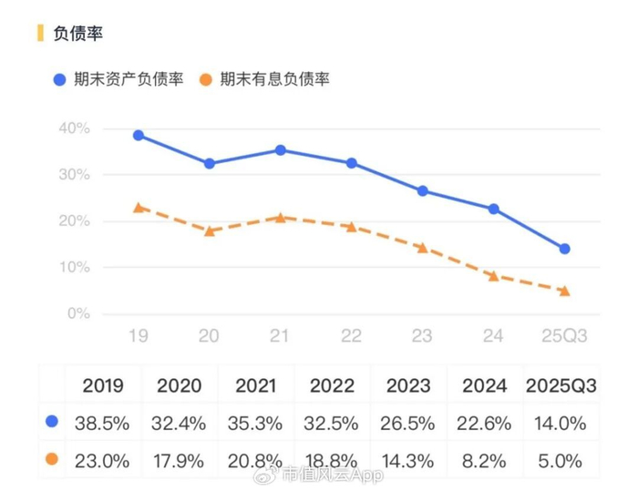 不單如此,2025年三季度末,公司的資產負債率為14%,有息負債率為5%,顯著低于中國鋁業的46%和云鋁股份的48%。
