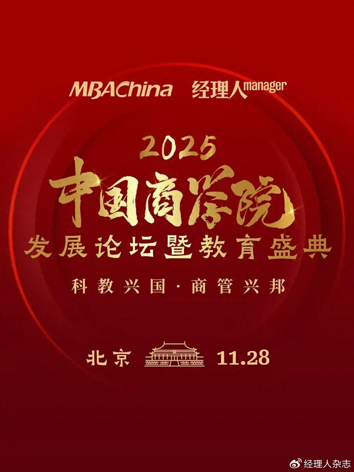 2025年11月28日,由 MBAChina 與《經理人》雜志聯合主辦的“2025年度中國商學院發展論壇暨教育盛典”在北京成功舉辦。