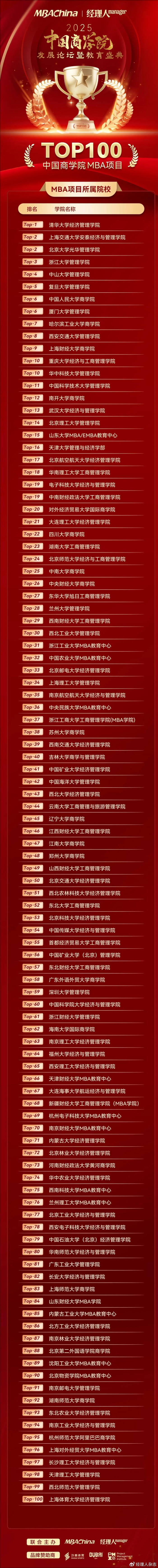 2025年度中國商學院MBA項目TOP100榜單——讓世界看見中國MBA的力量。