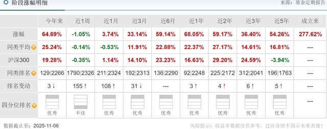 筆者還發(fā)現(xiàn),該基金在2024年2季度買入61.91萬股的紫金礦業(yè),2024年3季度持有92.87萬股,2024年4季度持有94.91萬股。2025年1季度持有49.02萬股,2025年2季度持有85.59萬股,2025年3季度持有92.65萬股。在該基金持有期間,在2024年4月1日-2025年11月7日股票價(jià)格上漲了79%。