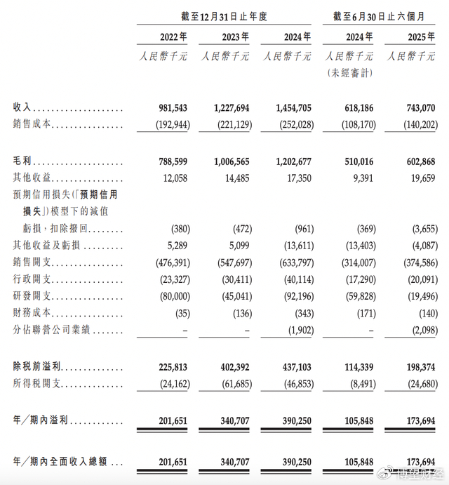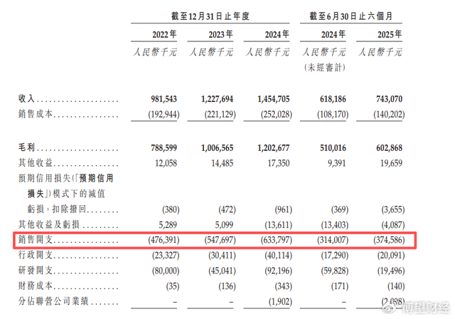 蔓迪的線上成功,建立在真金白銀的流量投入之上。2022年至2025年上半年,公司的銷售開支分別為4.76億元、5.48億元、6.34億元和3.75億元,占營收的比例始終高居44%至50%之間,2025年上半年更是突破了50%。