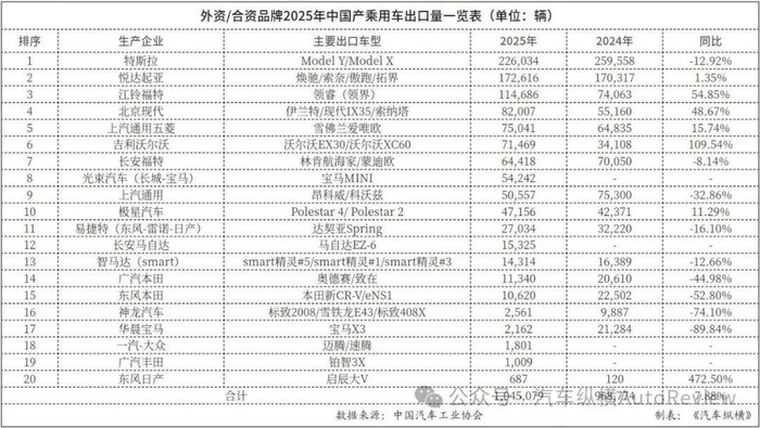 在中國汽車工業(yè)協(xié)會納入的統(tǒng)計數(shù)據(jù)中,2025年,我國外資和合資品牌乘用車對外出口量超過100萬輛,達到104.5萬輛,同比增長7.9%,約占國產(chǎn)汽車出口總量的14.7%,在外資/合資品牌總銷量中的占比約為11.4%。