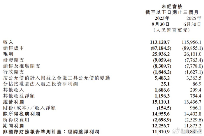 先看整體。2025年第三季度,小米集團總營收1131億元,同比增長22.3%;經調整凈利潤113億元,同比升80.9%,創下歷史新高。