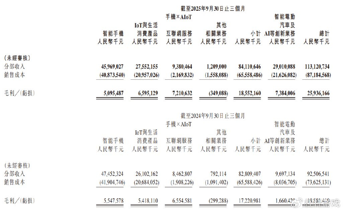 11月18日,小米披露了一份冰與火交織的三季報:一邊是手機業務的繼續萎靡,另一邊是汽車業務的突破性盈利。
