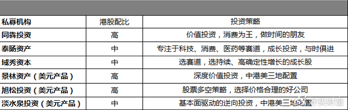 除以上標的外,睿璞、趣時、申九等機構也會在港股上有一定配置。