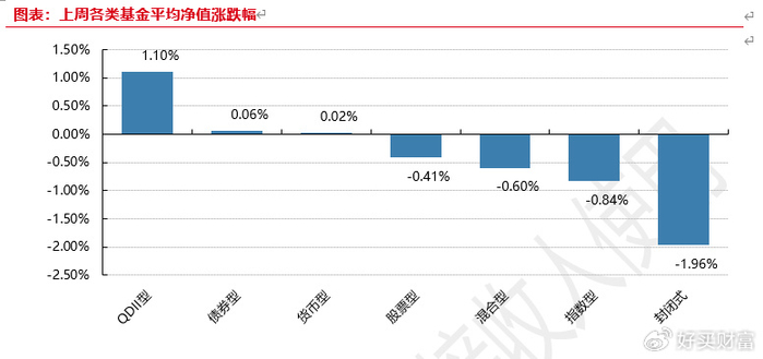 上周,權益類基金表現較好的是紅土創新醫療保健和前海開源中藥研究精選A等;混合型基金表現較好的是東吳國企改革A和匯安資產輪動等;封閉式基金表現較好的是博時招商蛇口產業園REIT和富國首創水務REIT等;QDII式基金表現較好的是華安法國CAC40ETF和易方達標普消費品人民幣A等;指數型表現較好的是銀華中證全指醫藥衛生增強和匯添富中證中藥A等;債券型表現較好的是光大恒利純債和諾安泰鑫一年A等;貨幣型表現較好的是廣發理財7天A和興銀雙月理財B等。