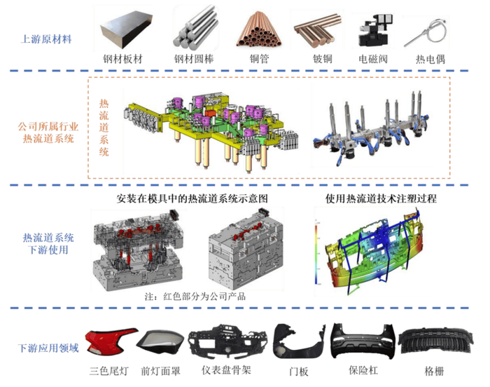這是一家主營熱流道系統的企業,產品廣泛應用于汽車車燈、汽車內外飾、3C消費電子等領域,客戶不乏比亞迪、三安光電、格力電器等知名企業。