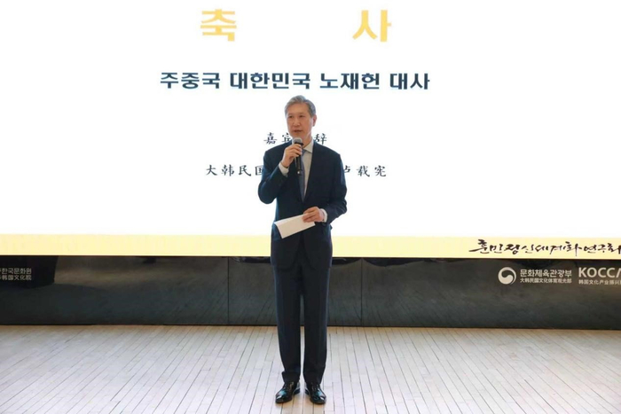 訓民正音全球化研究會會長崔洛元與韓國駐華大使盧載憲在致辭中肯定,本次書畫展匯聚中韓知名藝術家,恰逢元宵意義非凡,書法作為兩國重要文化載體,見證了中韓文化交流深化與民間友誼升溫,兩國文化相似且各具魅力。大使表示,韓國駐華使館與文化院將持續支持中韓文化交流,堅信在金辰坤院長任內,兩國文化交流合作將邁上新臺階。