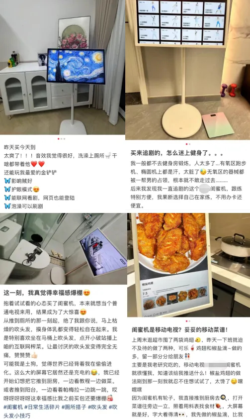 在海外市場,這類產品通常以功能命名,比如Portable TV(便攜電視)、Giant Pad with wheels(帶輪子的巨大平板)、Rollable Smart Touch Screen(可推行智能觸控屏)等。而在中國市場,它擁有一個更具情感溫度的名字——閨蜜機。這一命名錨定女性消費群體,給她們帶來陪伴與親近的情緒價值。