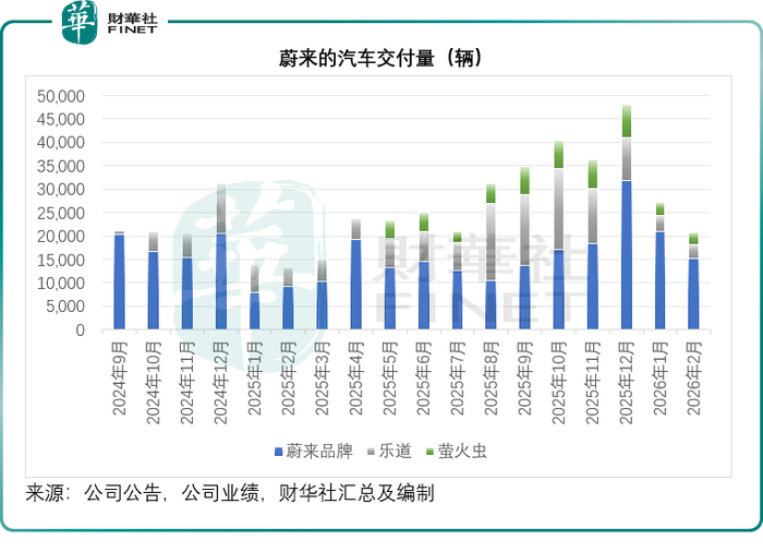 2025年第4季,蔚來(NIO.US)共交付新車12.48萬輛,同比增長71.70%,環比增長43.34%,創下季度交付新高。多品牌戰略初見成效,蔚來品牌、樂道品牌和螢火蟲品牌當季交付量分別為6.74萬輛、3.83萬輛和1.91萬輛,三大品牌均刷新紀錄,環比增長82.61%、1.68%和52.83%。交付量的放量推動汽車銷售收入達到316.06億元(單位人民幣,下同),同比增長80.86%。