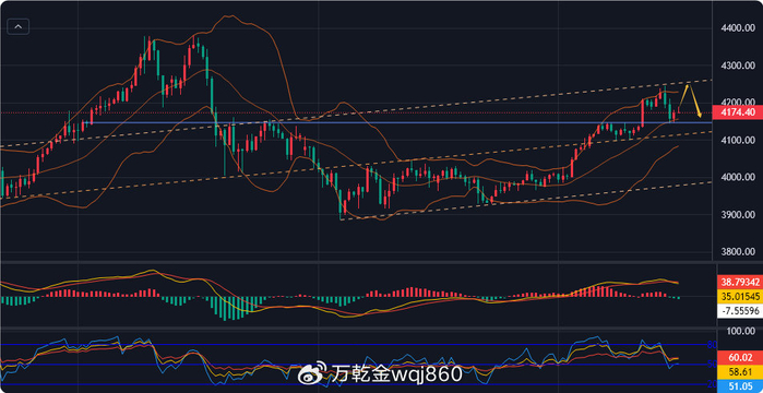 綜合來看,黃金今日短線操作思路上建議以回踩低多為主,反彈高空為輔,上方短期關(guān)注4220-4230一線阻力,下方短期重點關(guān)注4140-4145一線支撐。