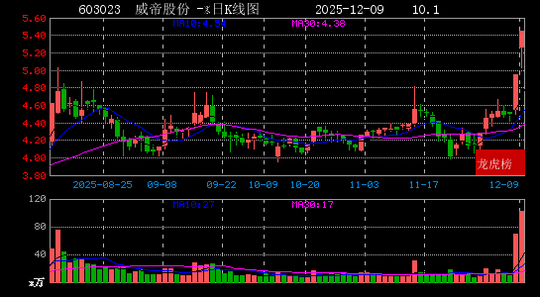 截止收盤,威帝股份報收5.45元/股,漲幅10.1%,成交量101萬手,成交額5.40億元,換手率18.21%。今日2板。
