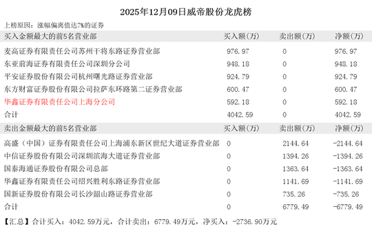 買入前5席為:麥高證券有限責任公司蘇州干將東路證券營業部、東亞前海證券有限責任公司深圳分公司、平安證券股份有限公司杭州曙光路證券營業部、東方財富證券股份有限公司拉薩東環路第二證券營業部、華鑫證券有限責任公司上海分公司。共計買入:4042.59萬元,共計賣出:0萬元。