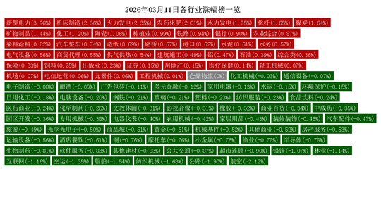今日漲幅居前的行業有:新型電力(3.96%)、機床制造(2.36%)、火力發電(2.35%)、農藥化肥(2.01%)、水力發電(1.75%)、化纖(1.65%)、煤炭(1.64%)、礦物制品(1.44%)、化工(1.2%)、陶瓷(1.06%)。