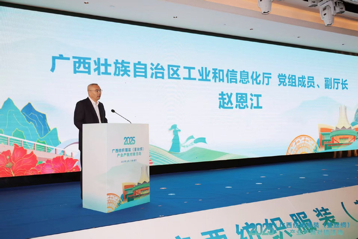 自治區工業和信息化廳黨組成員、副廳長趙恩江在致辭中表示,廣西作為全國重要的繭絲綢生產基地,蠶繭和生絲產量連續多年位居全國前列,已形成多個國家級紡織服裝產業基地。近年來,廣西積極把握“東綢西固”等戰略機遇,持續優化產業結構,大力拓展境內外市場,產業規模與綜合效益實現穩步提升。趙恩江向與會嘉賓重點介紹了廣西在“東綢西固”、對外開放合作以及新一輪工業振興等方面所面臨的重大機遇,誠邀海內外企業家把握發展契機,找準合作切入點,積極引入產業鏈上下游優質資源落戶廣西。他代表廣西方面鄭重承諾,將以最大的誠意、最優的服務和最好的環境,全力支持企業在桂投資興業,實現“放心投資、舒心經營、安心發展”。