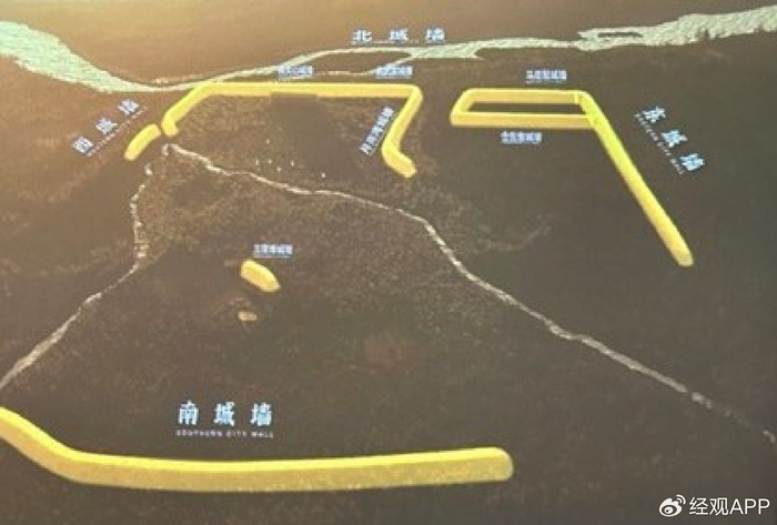 復(fù)原后的三星堆古城略呈北邊略窄,南邊略寬的梯形,城的東、西長度均在1800米以上,南城墻長約2000米。