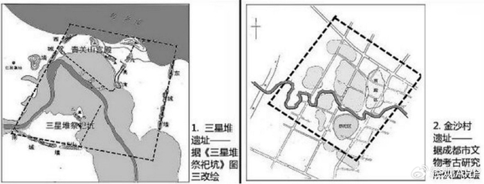 后來這種“法象上天”都城規(guī)劃在金沙遺址得到延續(xù),并在秦始皇統(tǒng)一后發(fā)揚(yáng)光大,影響了三座古代名城——秦都新咸陽、漢都長安城、隋唐洛陽城的城市格局。與“縮放大地”建城觀(元明清北京城的營建思想來源)相對應(yīng),共同譜寫了上古中國兩大都城規(guī)劃思想。