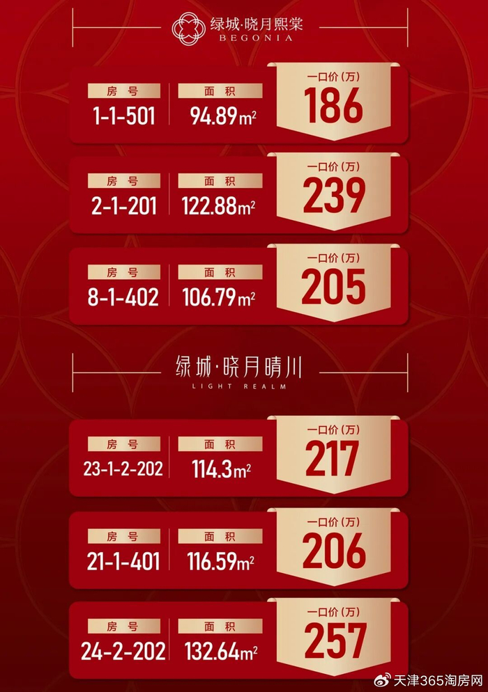 【西青精武鎮】綠城曉月熙棠???&綠城曉月晴川??,推出6套特惠房。