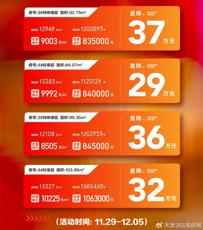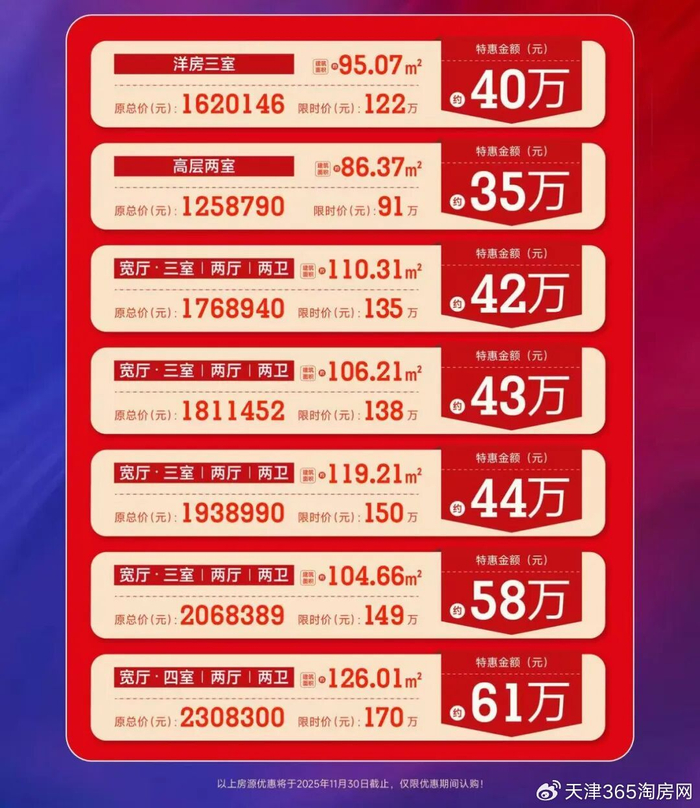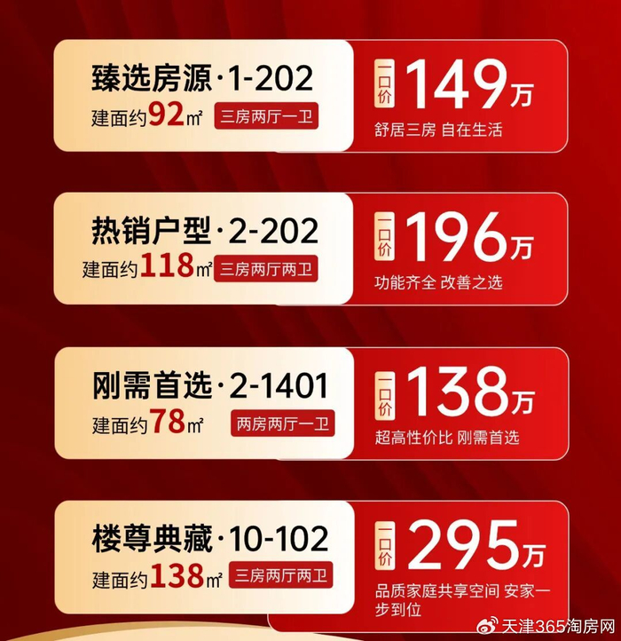 【西青南站】金地時光印,洋房95平米推出7套特惠房,總價153萬起。