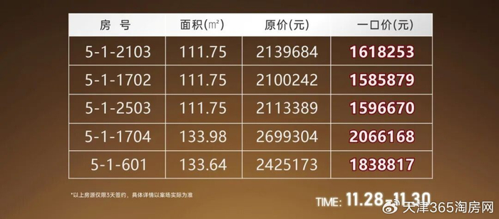 115平米一口價261萬,143平米一口價334萬,173平米一口價439萬。