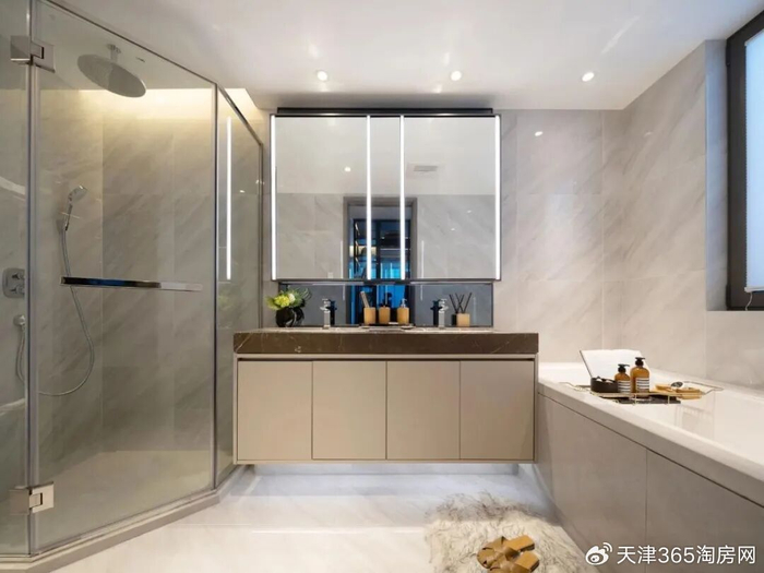 南向主臥是套間設計,雙臺盆、浴缸皆備,大宅儀式感拉滿。