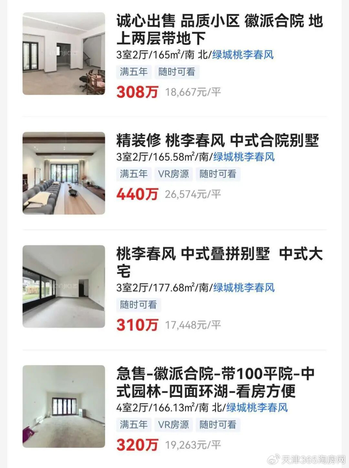 綠城桃李春風(fēng)合院產(chǎn)品165平米掛牌價308萬。