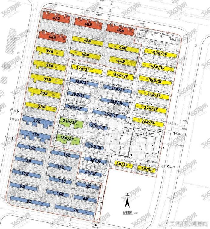 從規(guī)劃圖來看,整個小區(qū)分成兩期開發(fā)。