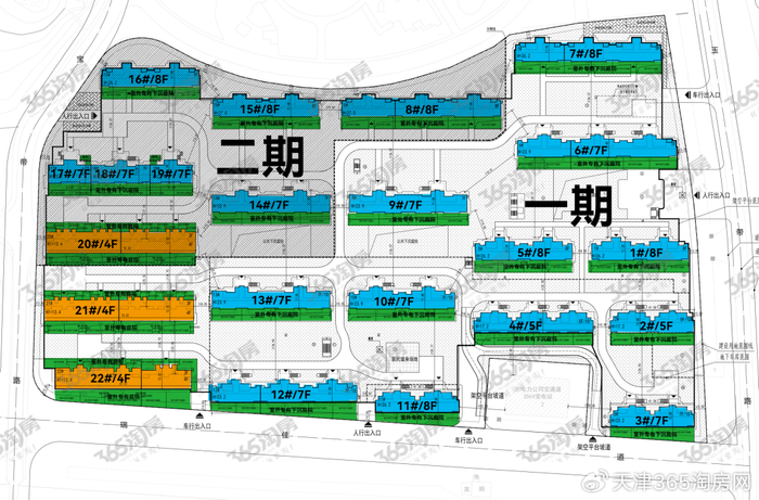 分兩期開發,全架空層設計,社區主入口開在東側。