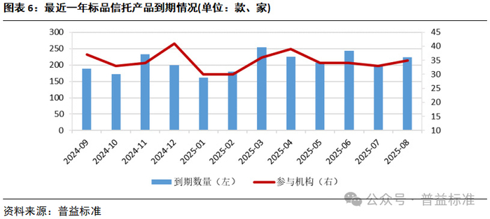 2025年8月共有35家信托公司的223款標品信托產品應到期清算,到期數量環比增加24款,升幅為12.0%。