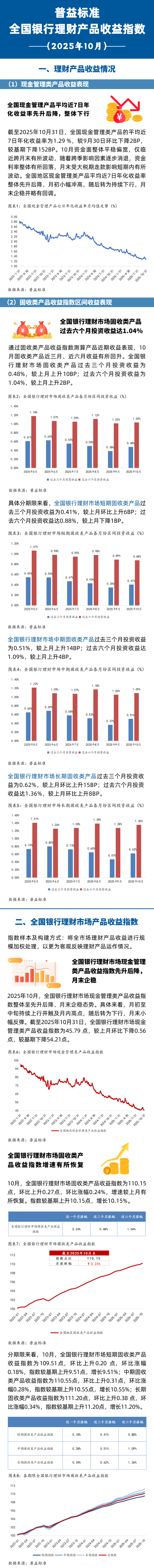 截至2025年10月31日,全國(guó)現(xiàn)金管理類(lèi)產(chǎn)品的平均近7日年化收益率為1.29%,較9月30日環(huán)比下降2BP,較基期下降152BP。10月資金面整體平穩(wěn)偏寬,僅臨近跨月末有所波動(dòng),隨著跨季影響因素逐步消退,資金利率整體有所回落,月末受大稅期走款影響短期內(nèi)有所波動(dòng)。全國(guó)地區(qū)現(xiàn)金管理類(lèi)產(chǎn)品平均近7日年化收益率整體先升后降,月初小幅沖高,隨后轉(zhuǎn)為持續(xù)下行,月末企穩(wěn)并略有回調(diào)。