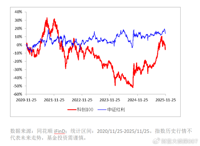 從理論分析上來看,這兩個指數在風險收益特征上形成完美互補:當科技投資趨勢形成時,科創100沖鋒在前;當市場回歸理性時,中證紅利穩健防御。