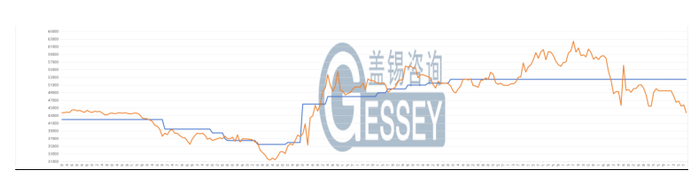 行情走勢(shì):主力合約收盤價(jià)為43775元/?噸,前結(jié)算價(jià)為45055元/噸,收盤價(jià)較前結(jié)算價(jià)跌幅為2.84%?,收盤價(jià)較開盤價(jià)跌1280元/噸,跌幅為2.84%,成交量為264手,持倉(cāng)量為2760手。