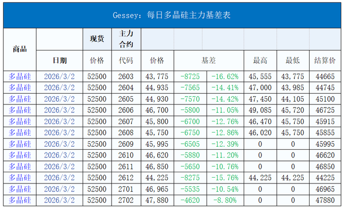 今日硅料價(jià)格整體維穩(wěn),N型料主流價(jià)格在48-55元/公斤,均價(jià)52.5元/公斤。N型顆粒硅主流價(jià)格在47-51元/公斤,均價(jià)50元/公斤。國(guó)產(chǎn)復(fù)投特級(jí)硅料主流價(jià)格在36-44元/公斤,均價(jià)43.5元/公斤,國(guó)產(chǎn)致密特級(jí)硅料主流價(jià)格在35-43元/公斤,均價(jià)42.5元/公斤。全球多晶硅料主流價(jià)格在19-22元/公斤,均價(jià)20元/公斤。