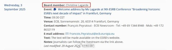 本周三15:30,歐洲央行行長拉加德將在德國法蘭克福的ESRB年會上致開幕詞,重點關注其對宏觀經濟和貨幣政策路徑的看法。ESRB全稱為 European Systemic Risk Board,直譯為歐洲系統性風險委員會。本次會議是ESRB的第九屆年會,主題為“下一個10年的影響”,持續一天時間。如果拉加德在本次會議上發表關于美國的關稅政策、歐央行的貨幣政策、歐盟對烏克蘭的政策內容,可能會對歐元匯率產生顯著沖擊。