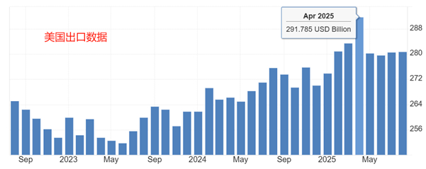 美國經濟的衰退,除了就業市場給出信號外,出口數據同樣拉響警報。歷史數據看,今年5月份至今,美國的月度出口總額分別為2803.9億美元,2796.5億美元,2806.02億美元,2808.32億美元,均在2800億美元附近原地踏步。在4月份特朗普開啟大規模關稅政策之前,美國的出口總額逐月升高,4月份甚至達到2917.85億美元的年內新高。據此判斷,如果特朗普的關稅政策延續,美國的出口產業恐將從“原地踏步”狀態進入“穩步下行”狀態。