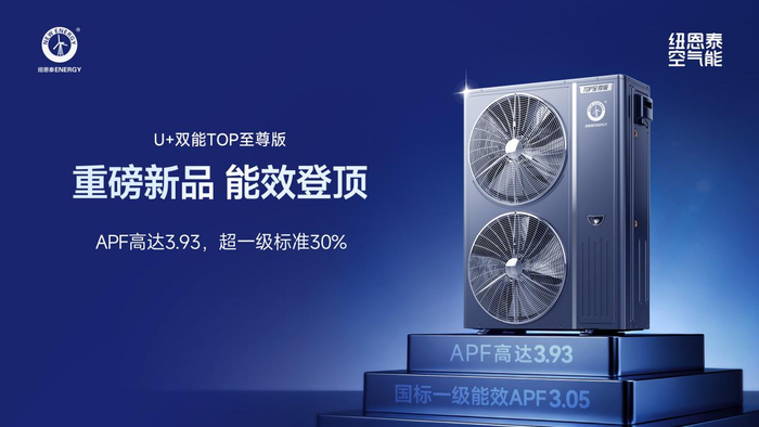 該認證等級遠高于國家一級能效,其獲獎新品U+雙能TOP至尊版全年能源消耗效率(APF)值高達3.93,超出國標30%,既彰顯了紐恩泰產品的卓越節能性能,也為消費者選購高能效空氣能提供了權威依據,成為選購評估體系的重要一環。