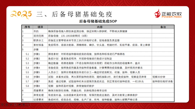 后備母豬管理以情期管理、引種隔離適應(yīng)馴化、基礎(chǔ)免疫為三大核心SOP: