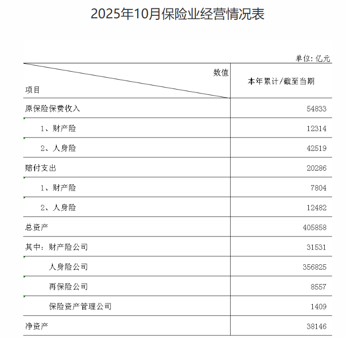 國家金融監管總部披露的數據顯示,前十個月,保險公司保費收入為54833億,同比增長8%,其中人身險保費收入42519億,同比增長9.63%,財產險保費12314億,同比增長2.7%。