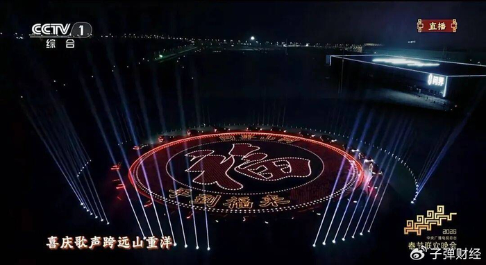 舞臺之上,新能源汽車品牌問界M9組成高精度數(shù)控?zé)絷?,以極致同步的光影變化,展現(xiàn)團(tuán)圓和美、山河壯闊的景象,“問界山河”與新春“?!弊纸惶纥c(diǎn)亮夜空,上演一場氣勢恢宏、極具視覺沖擊力的科技燈光大秀。