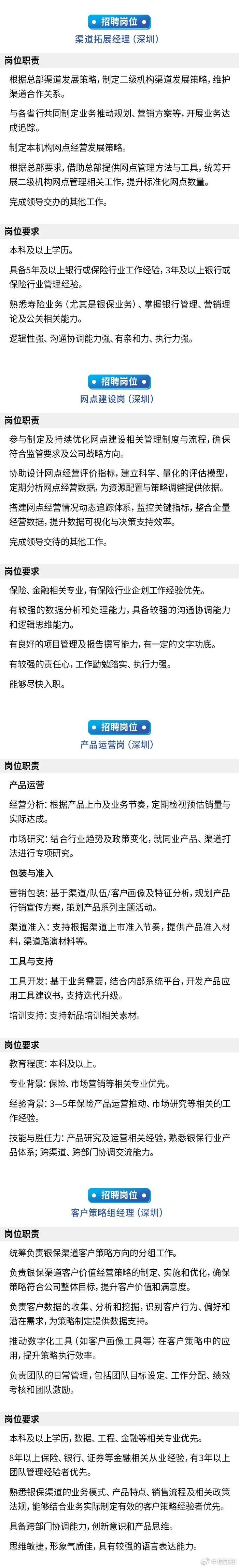 提及增隊伍,中保新知注意到,自2026年1月份以來,平安人壽銀保事業部已累計在平安集團官網發布了19個崗位需求,具體涉及財富管理專家、產品經理、產品策略(講師)、產品策略、渠道合作、銷售策劃、客戶經營管理、財務管理、培訓管理、渠道拓展經理、網點建設、產品運營、客戶策略組經理、客戶策略、運營消保管理、法律合規管理、經營策劃組經理、新契約流程管理等職位。其中個別崗位要求盡快入職,由此不難看出平安人壽對該類人才的迫切需求。