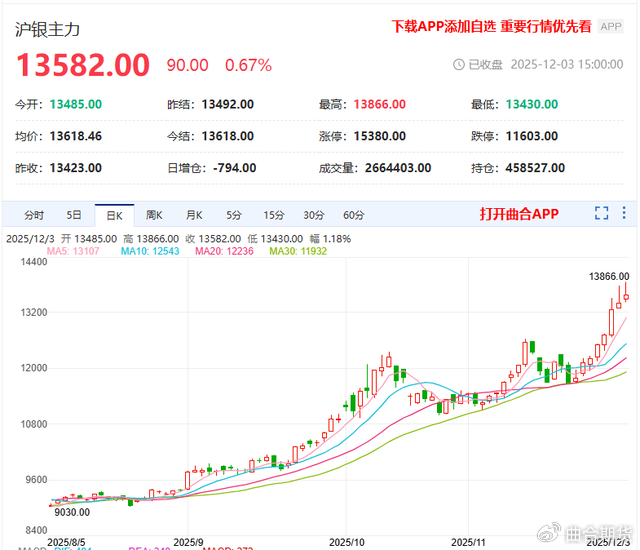 芝加哥商品交易所(CME)數(shù)據(jù)顯示,2025 年 11 月微型白銀期貨日均交易量同比激增 238%,而標準白銀期貨交易量僅增長 22%。微型合約的低門檻讓散戶得以大規(guī)模參與,11 月白銀期貨整體漲幅 18.6%,其中最后一周的 14.5% 漲幅正是散戶集中入場的結果,甚至在 CME 技術故障復市后,散戶的被動平倉還讓白銀 6 分鐘內(nèi)拉漲 6%,突破 57 美元關口。