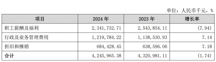 支出方面,2024年,廣州銀行業務及管理費42.46億元,同比下降1.74%。其中,因科技投入加大、網點建設投入增加,資產折舊攤銷6.84億元,同比增長7.18%;職工薪酬及福利23.42億元,比上年減少2.02 億元,同比下降7.94%。