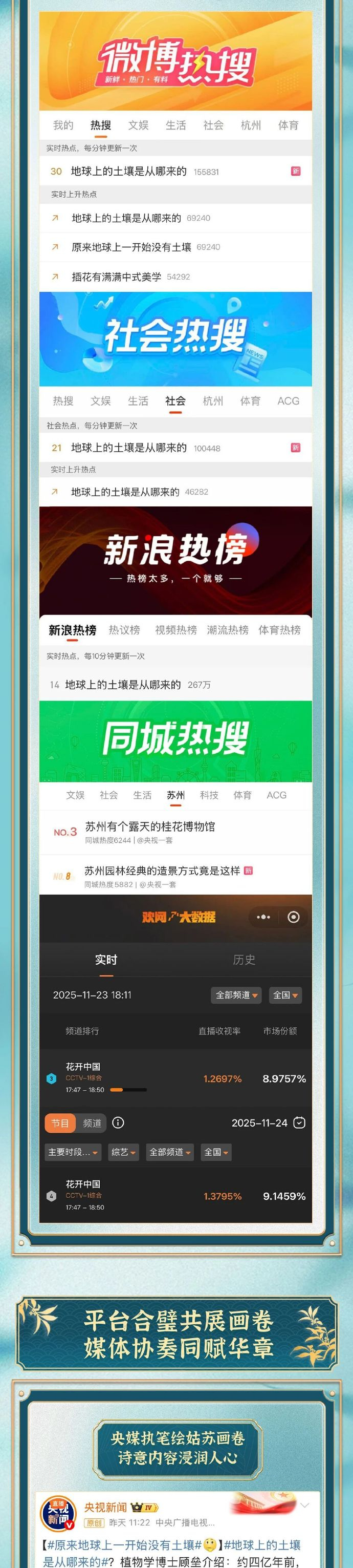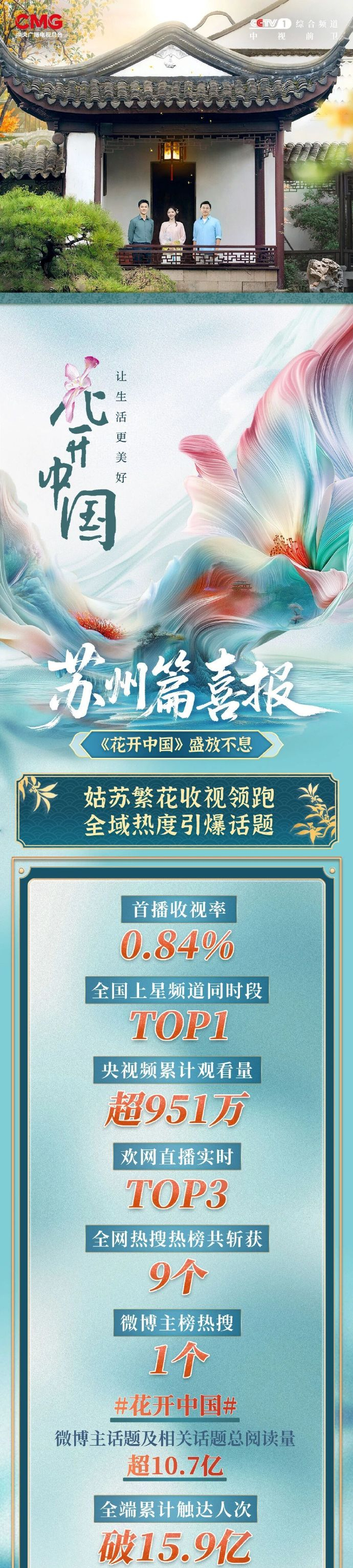 近日,央視《花開中國》蘇州篇在CCTV-1綜合頻道檔播出后,引起全網熱議和全國關注,本期節目全端累計觸達人次破15.9億。節目將桂花置于蘇州的文化語境中,從園林美學、市井生活到產業經濟,多維度解讀了這抹秋香如何浸潤一座城。