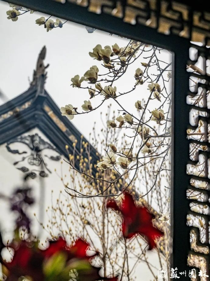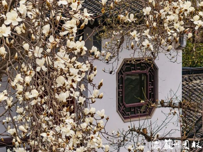 早春的晨霧還未散盡,獅子林里的玉蘭樹已悄然蘇醒。枝頭綴滿瑩白花苞,仿佛懸著一串串未拆封的月光,在青磚小徑旁靜待某個時刻的綻放。當?shù)谝豢|暖風掠過雕花窗欞,花瓣便如約舒展,似被喚醒的仙子,抖落冬日的沉寂,將素凈的裙裾鋪展在亭臺樓閣之間,一襲清輝悄然浸潤了舊檐新瓦。玉蘭花的白,是洗盡塵埃的純粹。回廊曲折處,香氣如絲如縷,悄然流淌。偶有花瓣隨風飄落,似雪片般輕盈,卻無雪的冷寂。拾起一片置于石凳上,紋理如脈絡(luò)般清晰,仿佛能觸摸到它積蓄一冬的絮語,在斑駁的樹影間流轉(zhuǎn),在青苔石階上低回。
