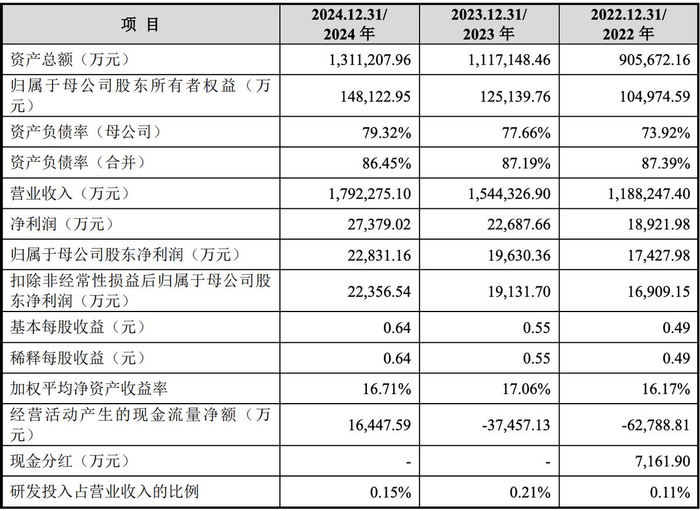 2022年、2023年和2024年,建發(fā)致新的營(yíng)收分別約為118.82億元、154.43億元和179.23億元,凈利潤(rùn)分別約為1.89億元、2.27億元和2.74億元,扣非后凈利潤(rùn)分別約為1.69億元、1.91億元和2.24億元。