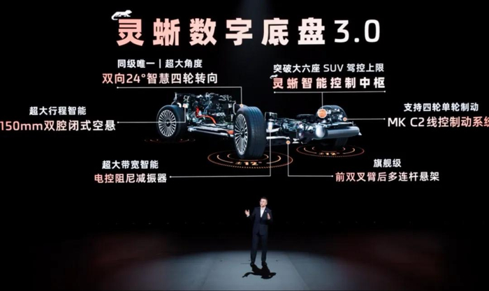 靈蜥數字底盤3.0的實力同樣直觀:150mm超大行程雙腔閉式空懸,搭配智能電控阻尼調節系統,提供硬朗清晰的掌控感,過彎側傾角度降低56%,配合全域防暈模式,成功拿下中汽中心防暈動A+級認證,讓全家出行徹底告別“坐船感”;而切換舒適模式后,系統通過單雙腔空簧與高頻阻尼調節,輕松過濾路面顛簸,過減速帶時,就連后排熟睡的孩子都不會被驚醒。