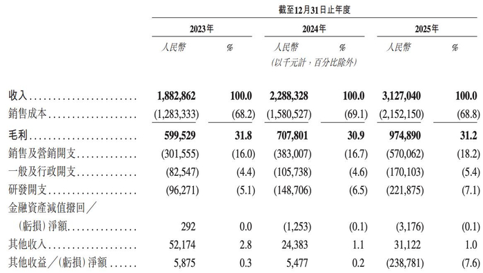2023年、2024年和2025年,創想三維的營收分別約為人民幣18.83億元、22.88億元和31.27億元,凈利潤分別約為1.29億元、8866.0萬元和-1.82億元,經調整凈利潤分別約為1.30億、9719.9萬元和9238.5萬元。