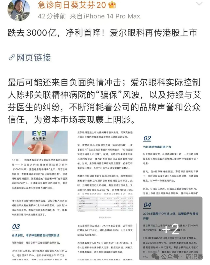現在,艾芬老師又在關注愛爾眼科的赴港IPO傳聞。對于愛爾眼科來說,這道檻非常棘手。
