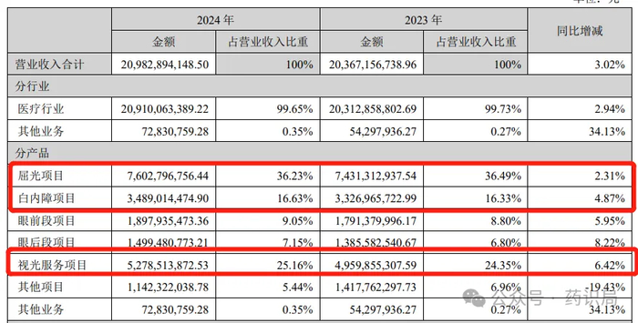 多年以來,屈光、視光和白內障項目一直是愛爾眼科主要收入來源,但2024年開始這幾大業務增長明顯乏力了。